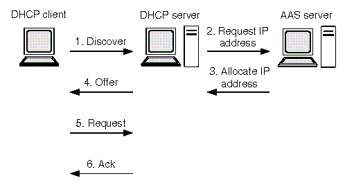 3. If requested, the AAS server allocates a dynamically assigned IP address for the DHCP server to assign - see ``Dynamically assigning IP addresses''. The AAS server takes the address from a pool of addresses that are consistent with the client's subnet.