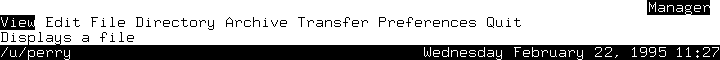 The tasks that you can perform are described in detail in ``Using the Manager menu options''. Many of the tasks that the Manager can perform involve two basic steps: first you specify the action to be done, (by selecting a menu option), and then you select the file or files you want to be acted upon.
